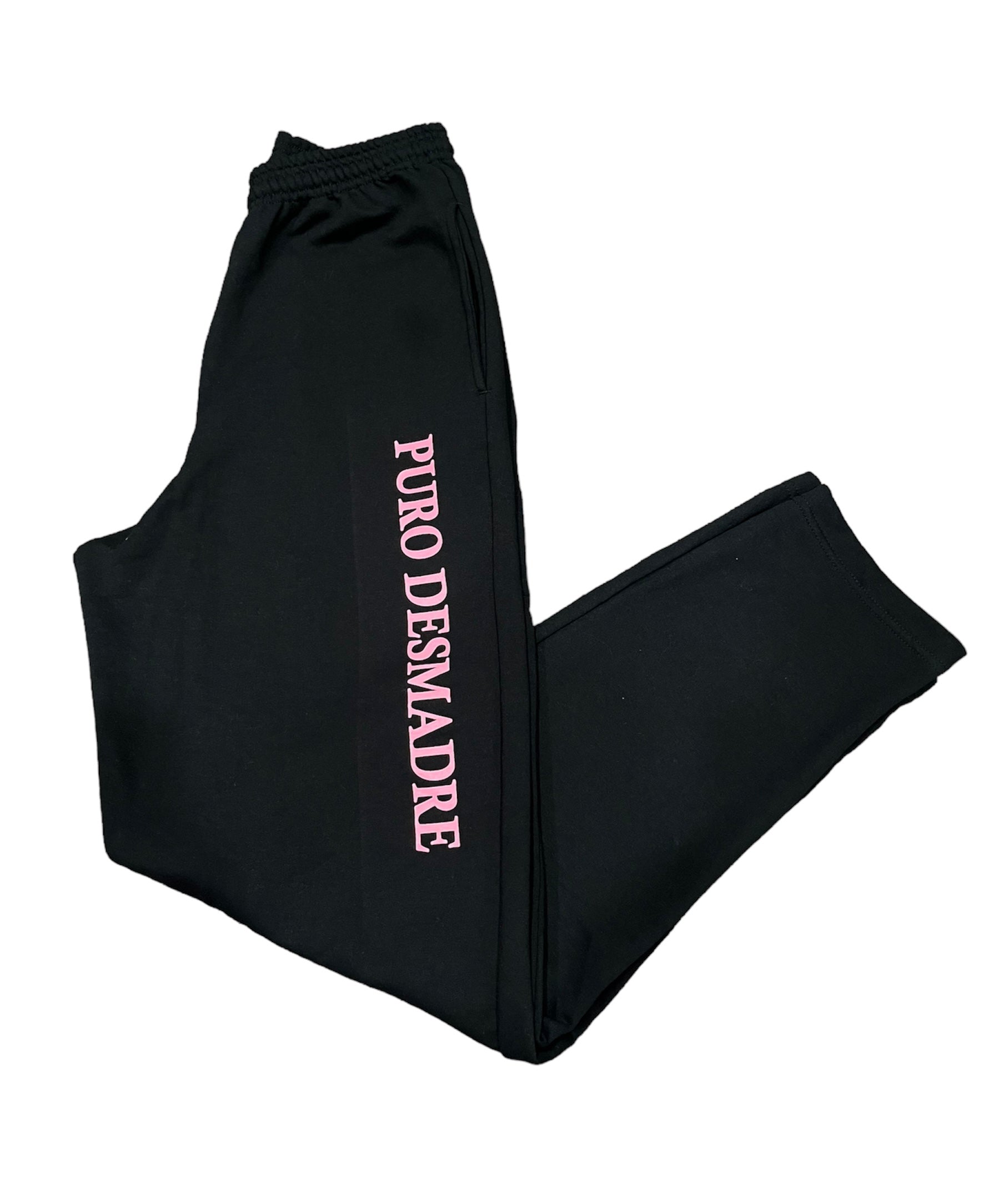 Puro desmadre black sweats pink letters
